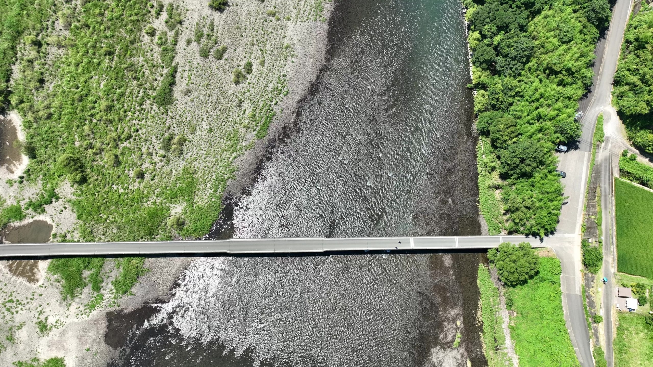 四万十川・ 佐田沈下橋 空撮 20240706 旅するドローン2024.10.032024年7月6日午前、四万十川の中流に架かる佐田の沈下橋付近で、DJI Mavic 3による空撮。一直線に両岸を結ぶ美しい沈下橋と穏やかに流れる四万十川。その透明度と穏やかな風景に、ひと時の「涼」を感じて頂ければ幸いです。
