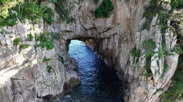 2024年7月5日夕刻、太平洋を望む高知足摺岬、白山洞門付近で、DJI Mavic 3 による空撮。外洋に向かって正対する国内最大級の花崗岩海食洞「白山洞門」、永い年月をかけ、外洋の荒波が創りあげたその巨大洞門の存在感は圧倒的。その悠々しい...